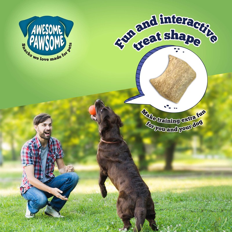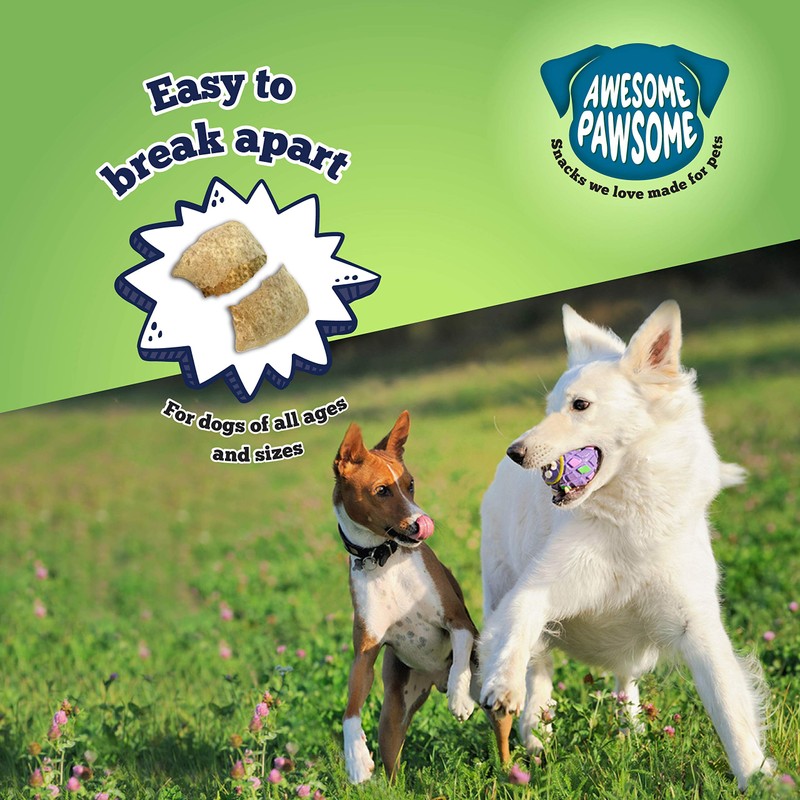 - FUN BITE SIZED SNACKS FOR DOGS. Our resealable pouch is easy to store in a bag or pocket. Pull out all natural Awesome Pawsome dog treats anytime, anywhere, and make any moment extra awesome for your furry friends! Tear it up, break it apart, and make the awesome last even longer with our Awesome Pawsome Dog Treats.