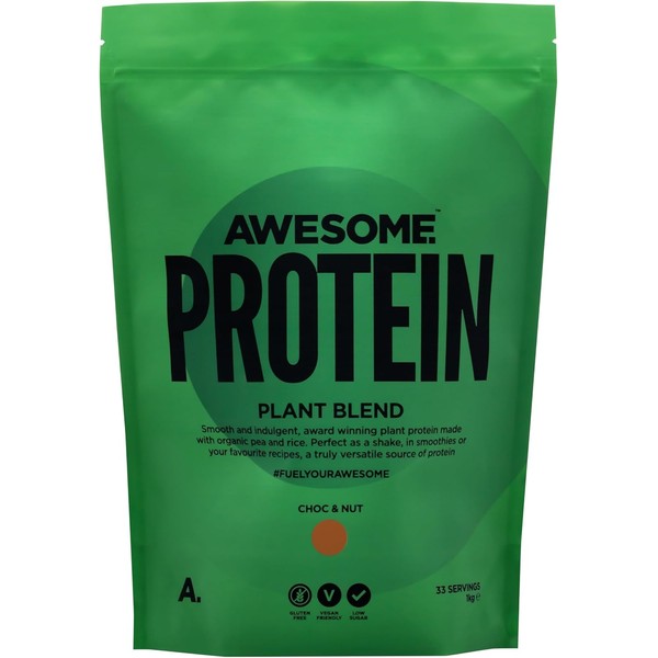 Awesome Supplements - Awesome Protein Choc & Nut - 1KG Vegan & Organic High Protein Powder - Low Calorie, Low Sugar