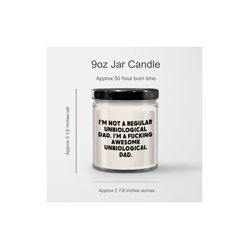 - Experience the warmth and comfort of our 9oz Vanilla Soy Candle, featuring the funny and inspirational quote 'I'm Not A Regular Unbiological Dad. I'm A F--king Awesome Unbiological Dad.'
