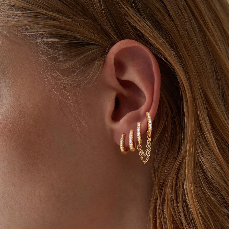 Awinesn Gold Chain Earrings for Women 14K Gold Plated CZ Studs and Huggie Earrings Set Trendy Jewelry Double Piercing Dangle Chain Huggie Hoop Earrings Set Hypoallergenic Earring Stacks (style2)