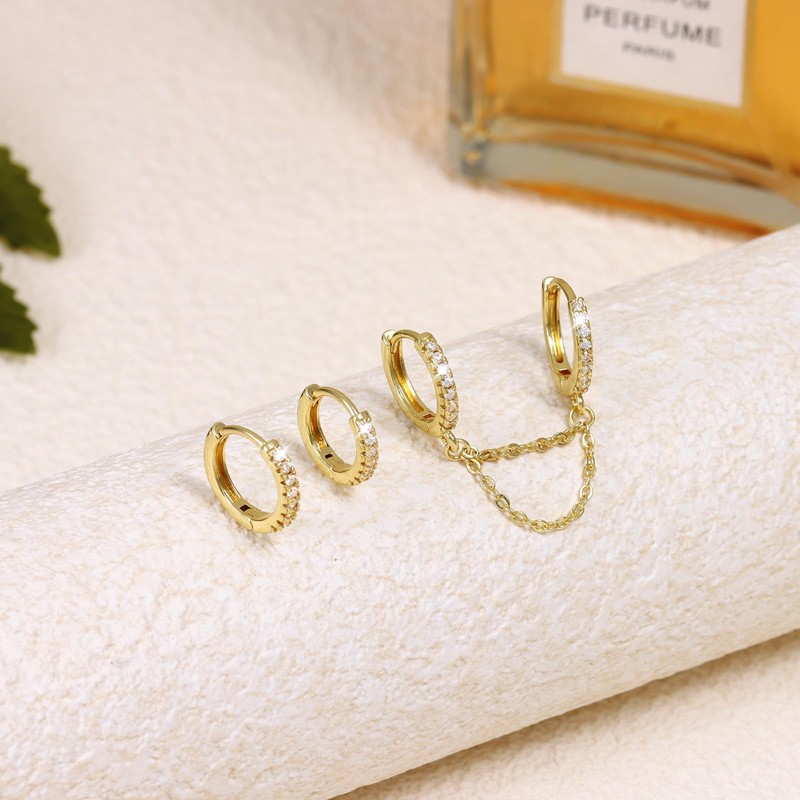 - 【Comfortable and Hypoallergenic】These gold chain earrings for women are all plated with 14K real gold plated, nickel-free, lead-free, no rust, no color fading. Inlaid with high luster AAAAA grade cubic zirconia, long lasting shine. 925 sterling silver Pin, hypoallergenic won't cause any burden on your ears. Can be worn every day without worrying about comfort and fading