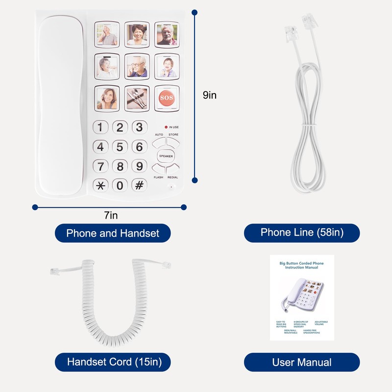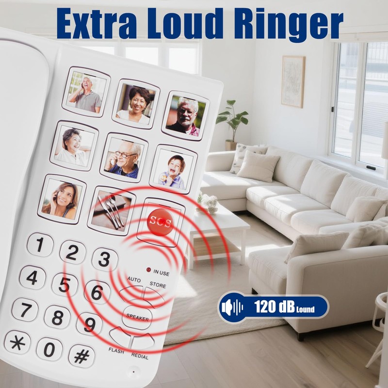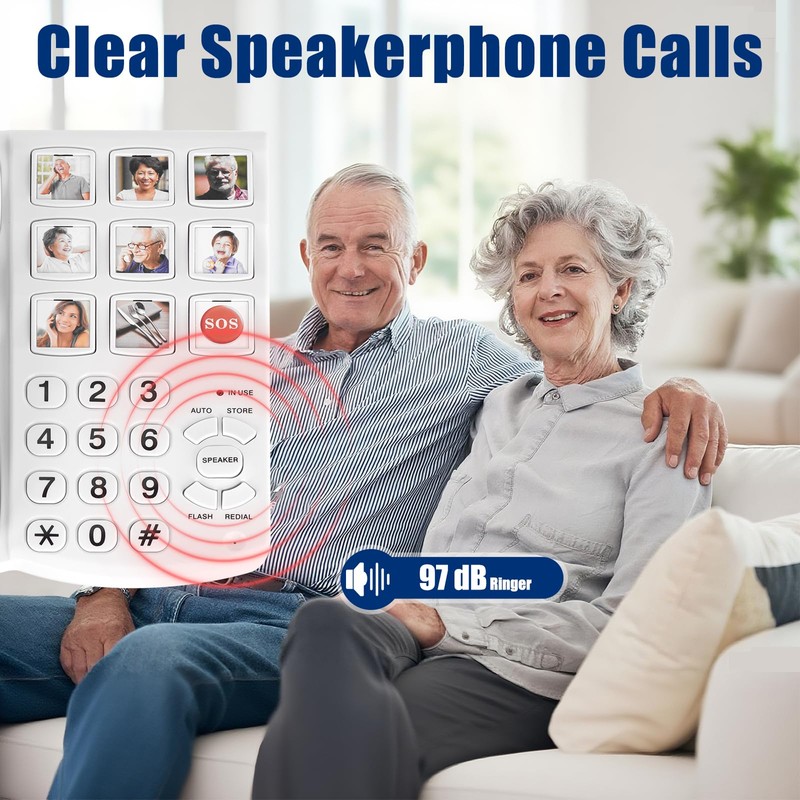 - 9 One-Touch Speed Dial: This senior-friendly landline phone comes with 9 one-touch buttons—8 customizable speed dials plus 1 red SOS emergency button. Each button can hold a photo of family or friends, making it especially helpful for seniors