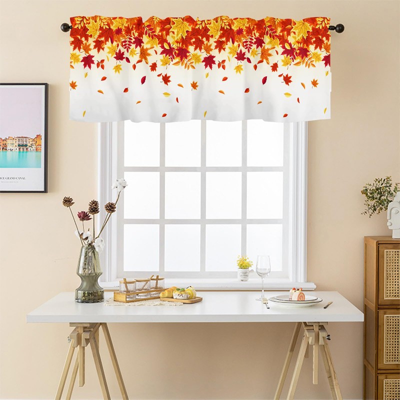 - Harvest leaves valances decor: Our autumn valances for windows are printed with our lovely patterns. Funny pattern will easily match with your home styles, Hang on this valance in your bedroom, kitchen, bathroom, will give your window a look.