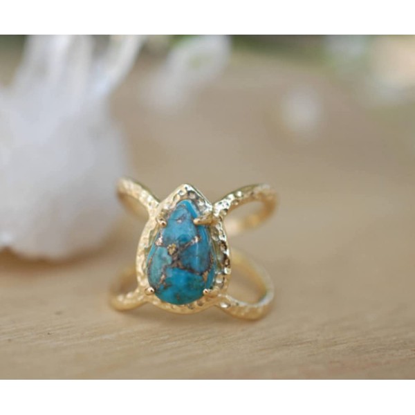Awmnjtmgpw 18K Gold Inlaid Teardrop pear Shaped Turquoise Ring Size 6-10 (Size 10)