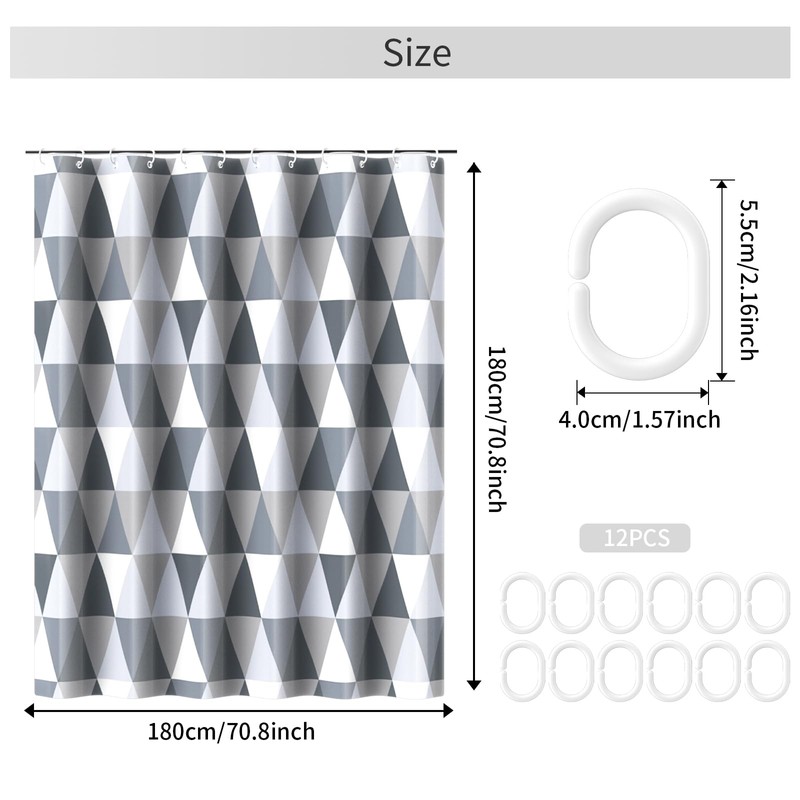 AwmnSrman Shower Curtain - Waterproof Bathroom Shower Curtain with 12 Shower Curtains Hooks, Quick-Drying Modern Elegant Design Polyester 180 x 180cm