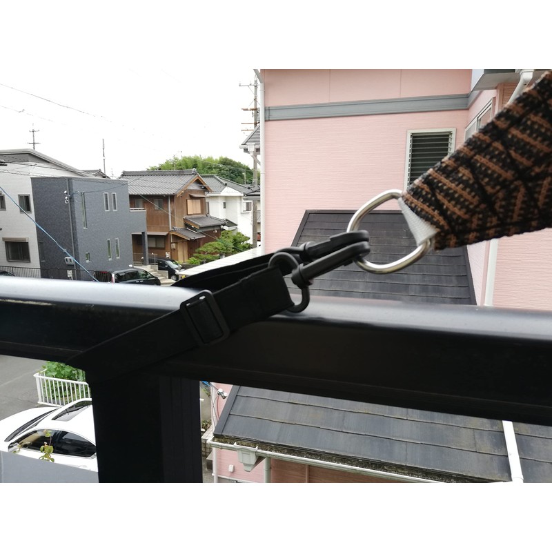 - Features: Parts that allow you to adjust the awning shade to the desired length. To attach to the shade, simply hang the hook on the grommet area and remove it in windy conditions. The length of the belt can be adjusted, so you can fix the shade firmly