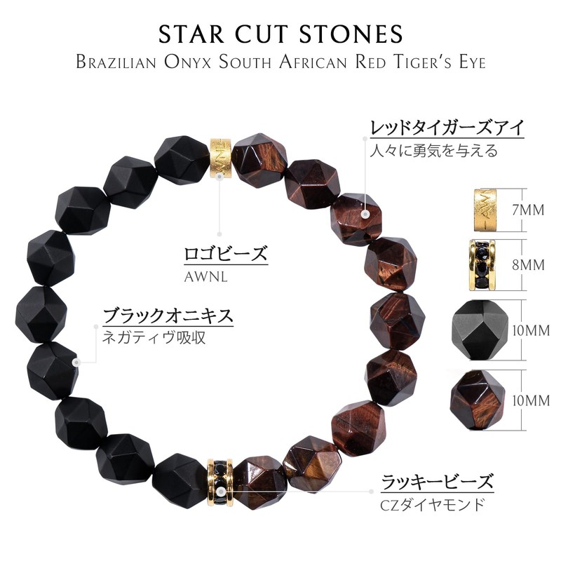 [AWNL] Men's Bracelet 10mm Natural Stone Tiger Eye Dumortielite Onyx | Silver 925 K18 Gold Plated | Wrist Circumference 15-19cm, Stone, red tigers eye