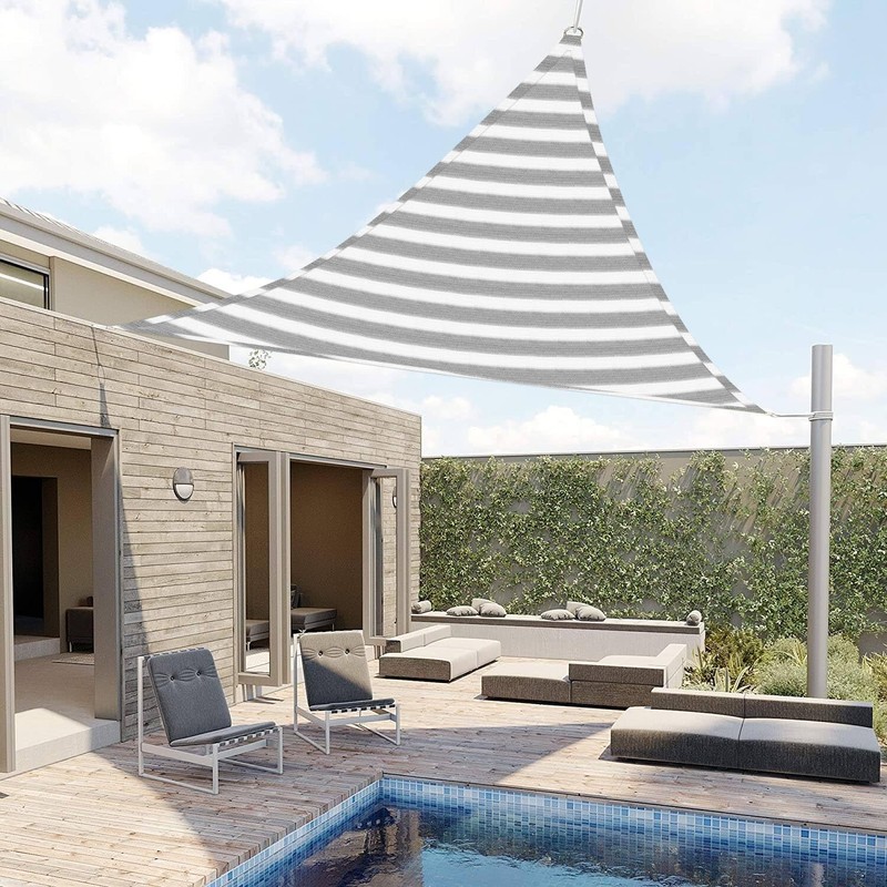 Awnpro 10' x 13' x 16.4' Triangle Shade Sail Awning for Outdoor Patio, Garden and Backyard Sun Protection Awnings Gray White Strip