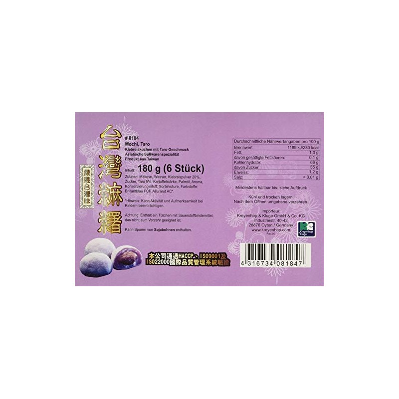 - TARO: Die Sorte Taro erinnert geschmacklich an Esskastanien oder Kartoffeln, sodass die Kombination im süßen Kuchen ein ideales Geschmackserlebnis hervorruft