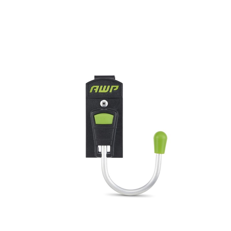- The AWP Monster Hook is perfect for holding most cordless drills nail guns, saws, gardening tools and many other large items. Provides easy access for large tools and the hook swivels to accommodate both right and left-handed users. Includes a metal belt clip for easy attachment.