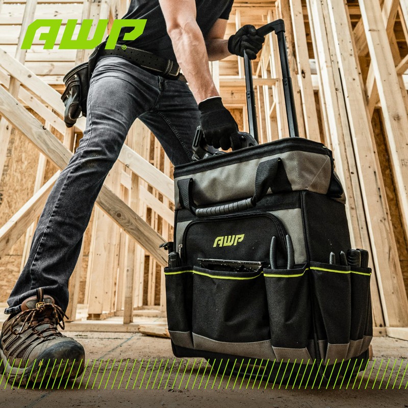 AWP Rolling Tool Bag Durable Tool Tote Water-Resistant Organizer for Professionals and Contractors, Adjustable Handle for Travel, Black | L-22814