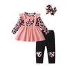 Awxoder Baby Girl Clothes Leopard Print Tops + Heart Pants Outfit Set, Pink, 12-18 Months