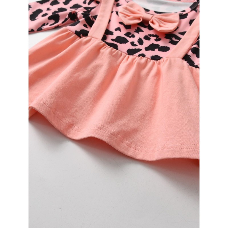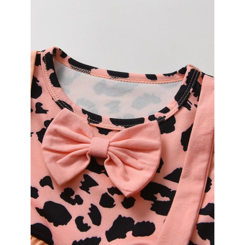 - Design: baby girl set, top with bow pattern leopard print design, with love trousers, a matching set to make your little baby look more fashionable!