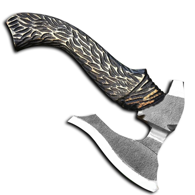 - Axe -Better quality of the sharp edge of the blade, perfect grip, quality finishes, hard edge and cutting, the cutting edge to keep after the rough and tough use, great work of art for a perfect poison knife as well as fully functional.
