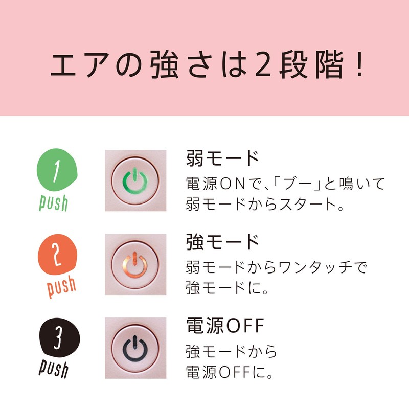 強さは2段階調節。スイッチを押すと「ブ-! 」と鳴きます。