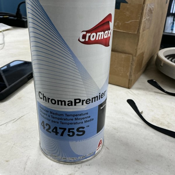 This product is a reducer medium temperature quart made by Axalta Chromapremier, with the manufacturer part number 42475s. It is a type of automotive paint supply that is commonly used in the industry.