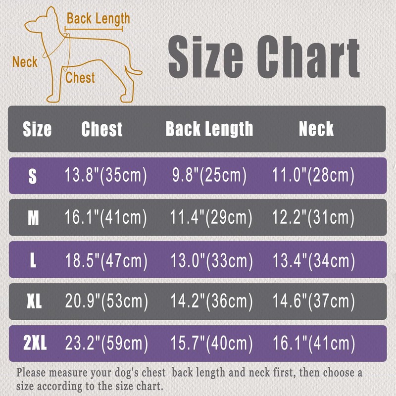 • 5 Sizes: S to 2XL for small and medium dogs. Please measure your dog's chest circumference and back length first, then refer to the size chart to choose the right size, back length is the first consideration.