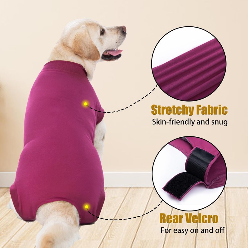 - E-Collar & Cone Alternative: The dog medical suit is highly elastic, breathable, lightweight and will not restrict your dog's freedom, so your dog can easily eat, drink, play and sleep. The dog surgery recovery suit protects wounds, sutures, bandages, hotspots, skin problems of your dog.