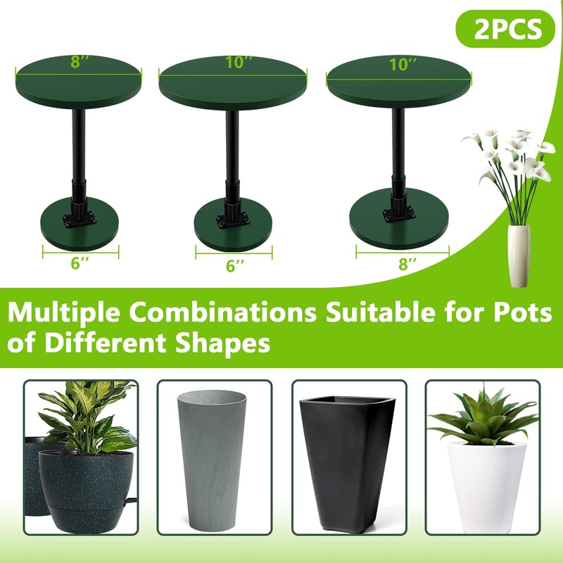 Axcoix Axcoix 2 Pack Adjustable Height Plant Risers for Inside Pots, 12-21" Planter Inserts for Large Pots, Pot Fillers for Tall Square Round Taper Planters (6" 8" 10" Base or Top)