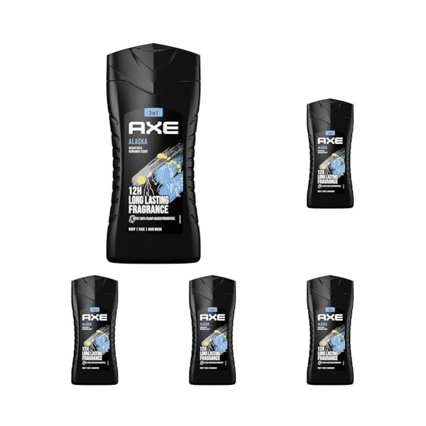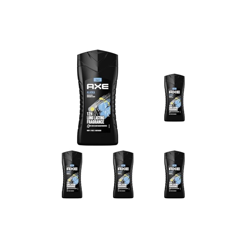 Axe 3-in-1 Duschgel & Shampoo Alaska für langanhaltende Frische und Duft dermatologisch getestet 250 ml 1 Stück, Minze,Frisch (Packung mit 5)