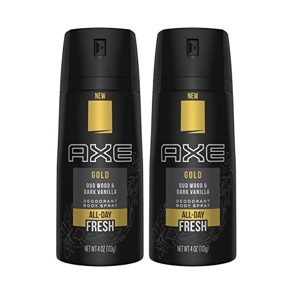 Axe Gold Oud Wood and Dark Vanilla Deodorant Body Spray 4.0 oz (Pack of 2)