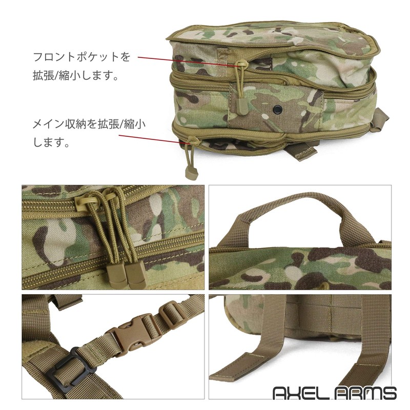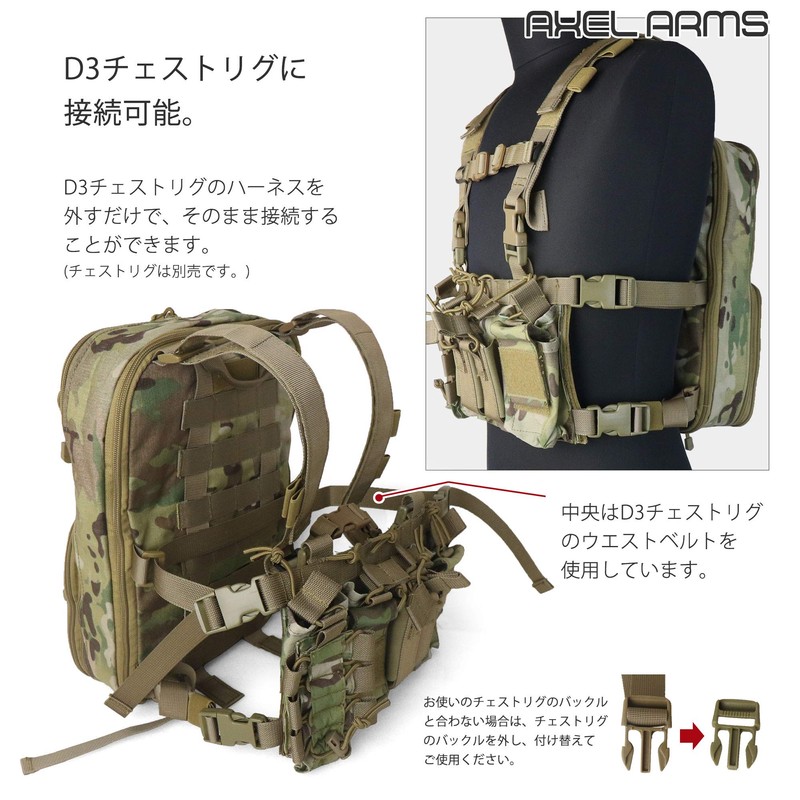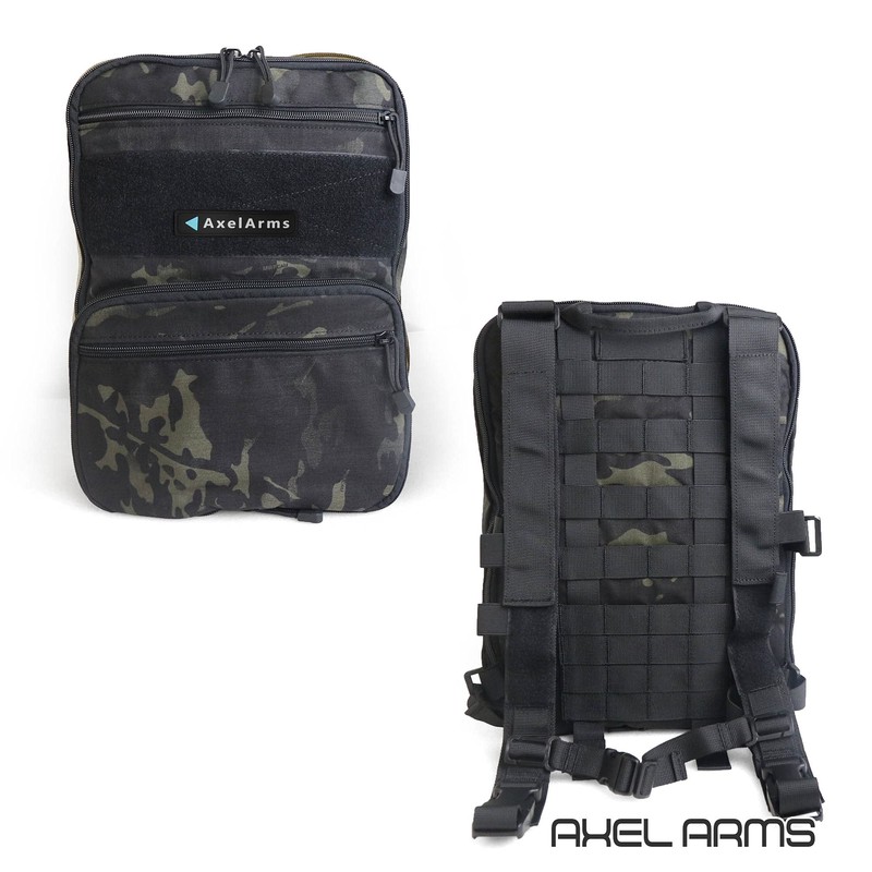 Axel Arms Tactical Flat Backpack (Camouflage, Multicam Black) with Variable Capacity, D3 Chest Rig, Daypack, Spring, Summer, Autumn, Winter, Airsoft