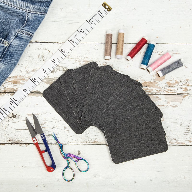 AXEN 12 Pieces Iron-on Denim Patches, Repair Patches for Jeans Denim Clothing, Sewing Repair Patches, Black