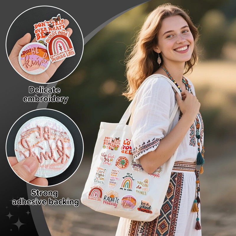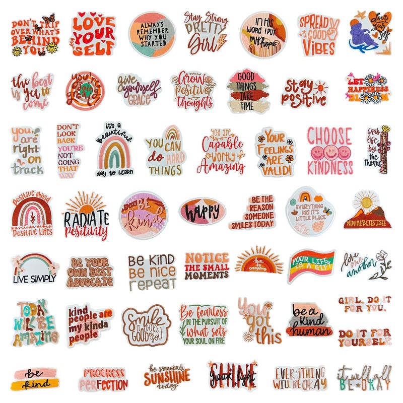 - 50 pieces of postive affirmation phrase themed iron on/sew on patches in package