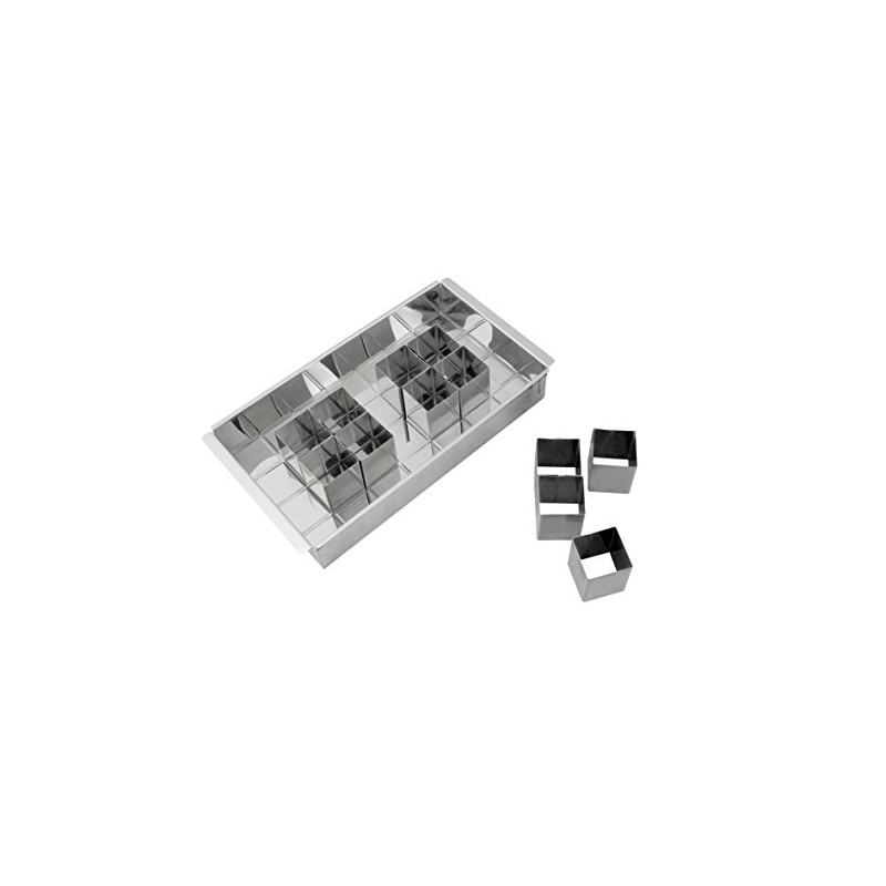 • Baking mould set, stainless steel, rectangular, dishwasher safe, a large cake mould approx. 31 x 5 x 18 cm with 12 small, individually movable cake moulds approx. 4 x 5.4 x 4 cm, ideal for baking cakes in from letters and numbers, your pastries will be an eye-catcher at any party, in a colour box large baking mould: approx. 31 x 5 x 18 cm. Small baking moulds: approx. 4 x 5.4 x 4 cm max. 200 °C