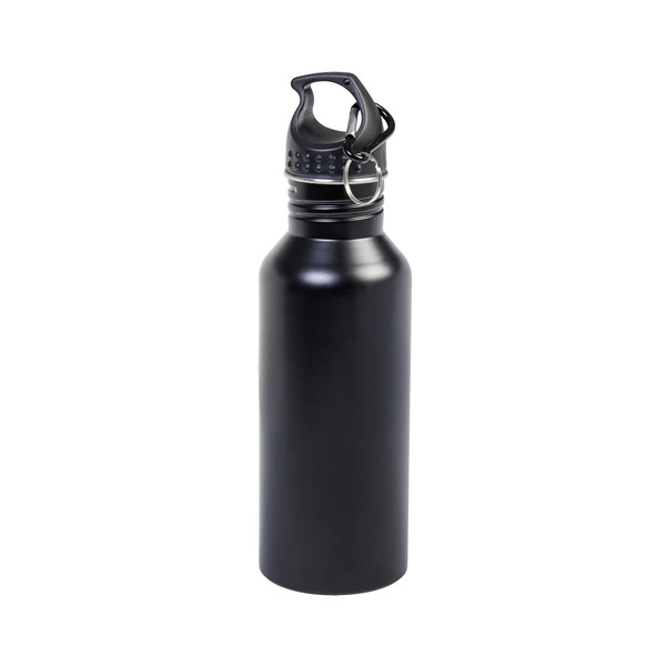 - Lightweight stainless steel water bottle, ideal for home and travel, e.g. For sports, hiking, travelling, outdoors, etc. - with plastic closure, firmly integrated handle and practical carabiner in black/silver for attaching to the backpack etc.