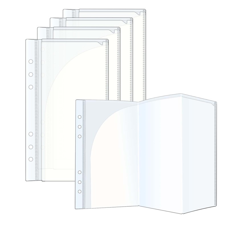 AxeWoodz 5pcs A5 Binder Pockets Clear PP Trifold File Folders Zipperless Sheet Protectors Documents Organizer for 6 Ring Binder Planner
