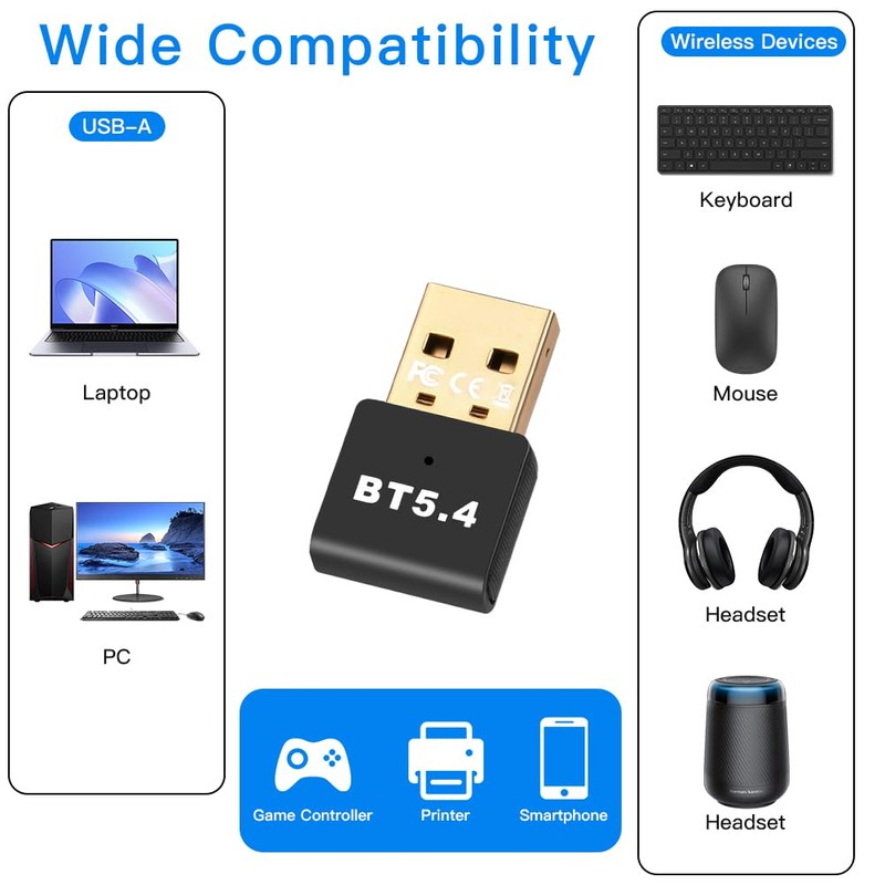- 【BREIT VERWENDET】Der Bluetooth 5.4-Adapter verfügt über eine höhere Version und ein breiteres Anwendungsspektrum. Es können 7 Geräte gleichzeitig angeschlossen werden, ohne dass sie sich gegenseitig stören. Perfekt für Bluetooth-Drucker, Lautsprecher, Kopfhörer, Kopfhörer, Tastaturen, Projektoren, Gamecontroller und mehr. Hinweis: Es kann nur ein elektronisches Gerät desselben Typs angeschlossen werden.