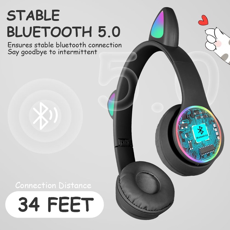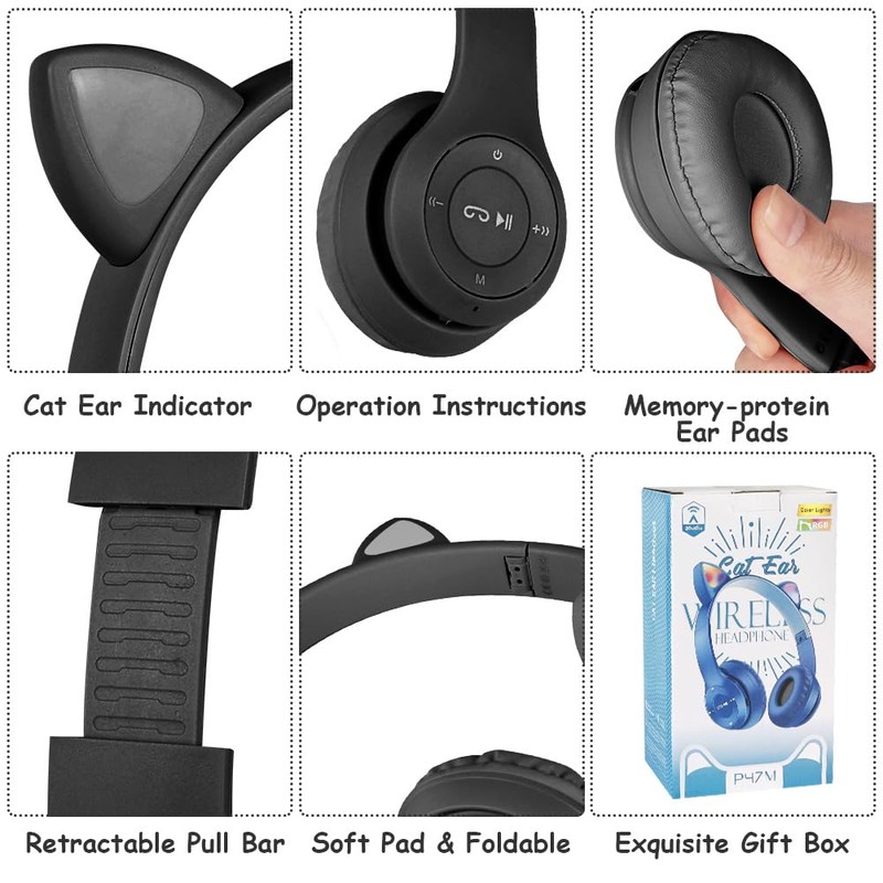 - Cat ear folding headphones: with the cute and stylish LED cat ear design and padded ear pad headband, the ergonomic headphone design provides precise fit and comfort without applying unpleasant pressure on your child's head. And the foldable design is also more space-saving when storing and more convenient to carry when travelling. It is a perfect birthday and Christmas gift for children aged 3 to 16 years.