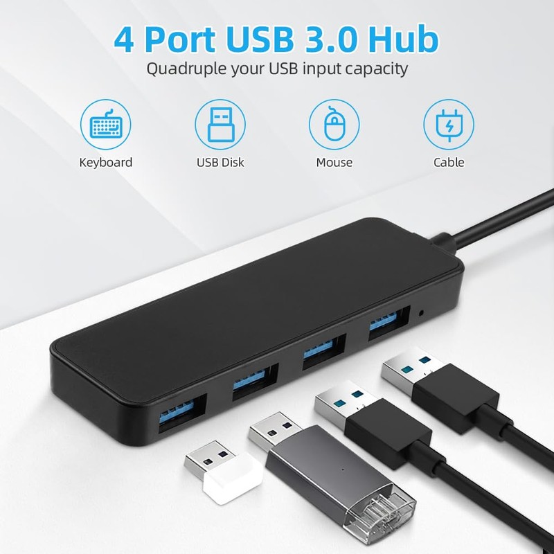 AXFEE Powerful and Slim USB Hub, designed for office and game users, four USB 3.0 ports can meet all your daily needs. This saves space and makes it easier to use.