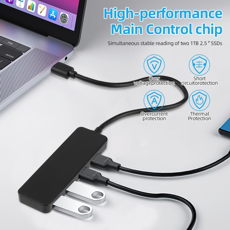 • 5G BPS high speed transmission: the USB 3.0 hub transfers data via USB at a speed of up to 5 Gbps, fast enough to transfer high-resolution movies in seconds, and can send and receive important files quickly. The USB hub can read two 1TB 2.5" SSD simultaneously.
