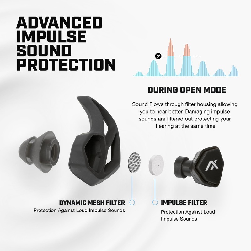 AXIL X30i Noise Reduction Ear Plugs - Black - Hear-Through Mode Hearing Protection for Concerts, Live Events, Shooting, Sports - 25dB Reusable Foam and Silicone Eartips with Carrying Case