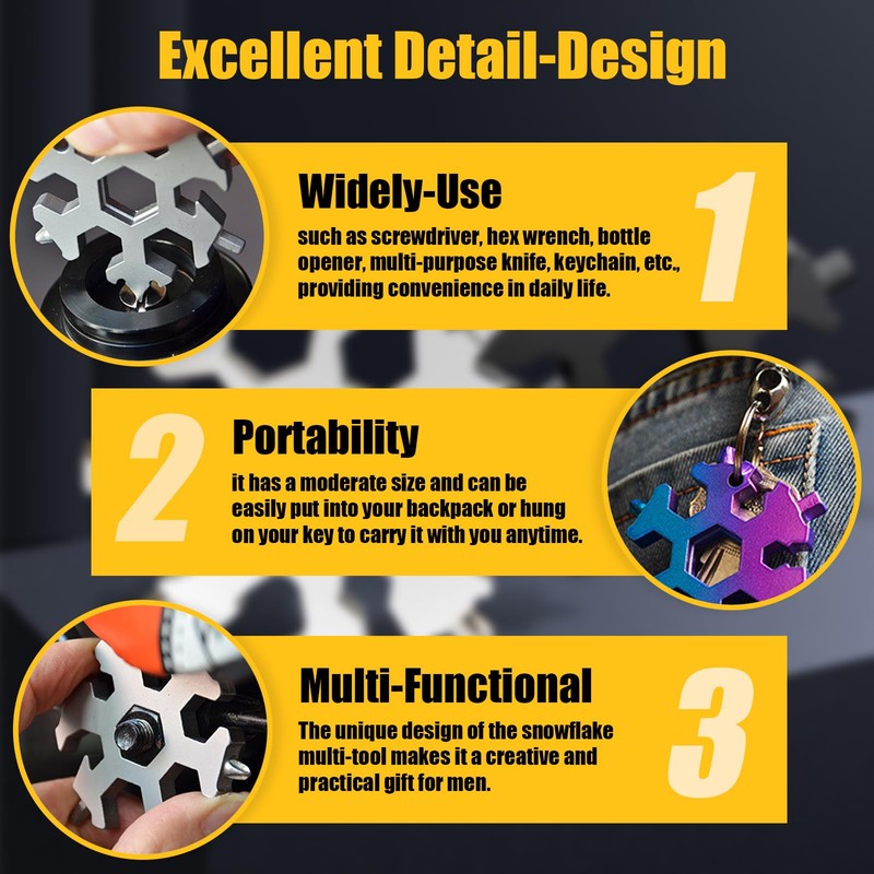- Axinyijia Pack of 3 Snow Keys Snowflake Multitool Ring Spanner 18-in-1 Snowflake Multitool Tool Christmas Gifts for Men