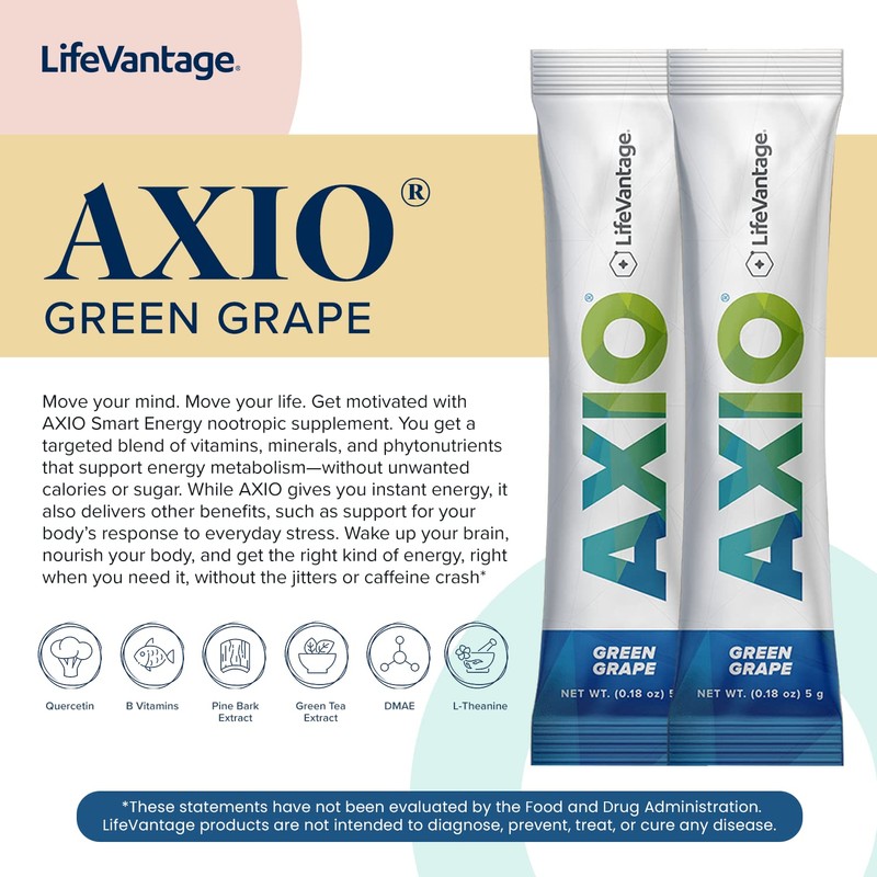 - Begin taking AXIO powder drink mix and support your overall cognitive health. This energy supplement improves mental endurance, concentration, and memory retention. For a healthier mind!