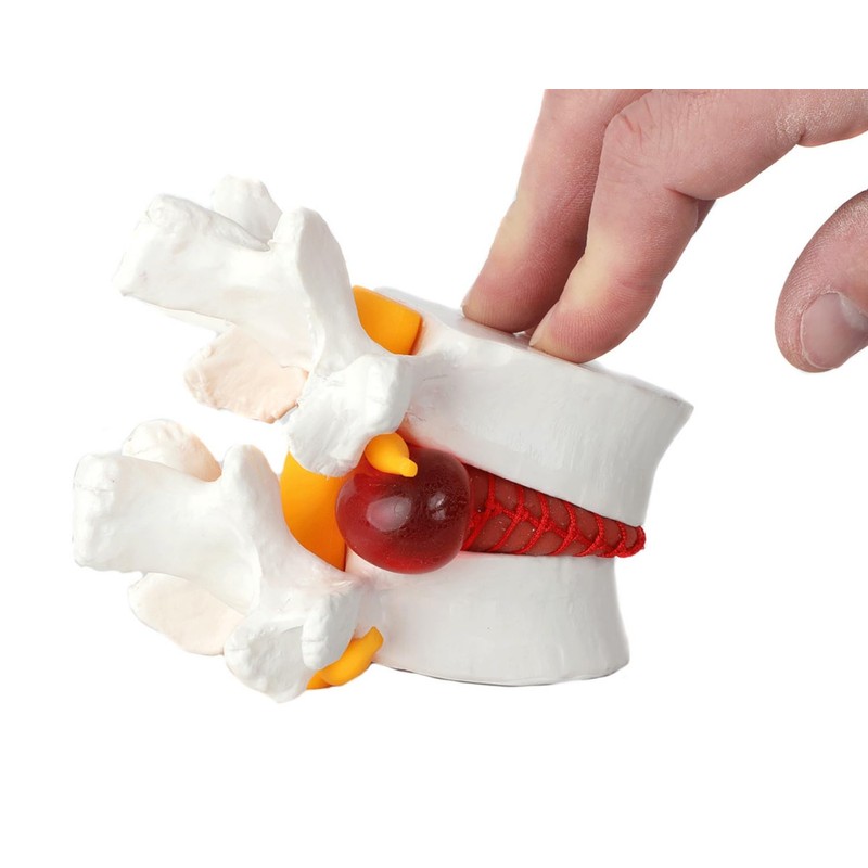 - Herniating Disc Demonstration Model: This interactable model can be depressed and expanded to show the action of a herniating disc expanding and interacting with the spinal nerves, making it perfect for patient and student education.