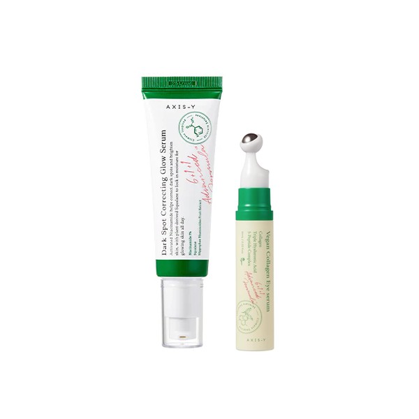 This set consists of [AXIS-Y]Dark Spot Correcting Glow Serum 50ml and [AXIS-Y]Vegan Eye Serum 10ml.