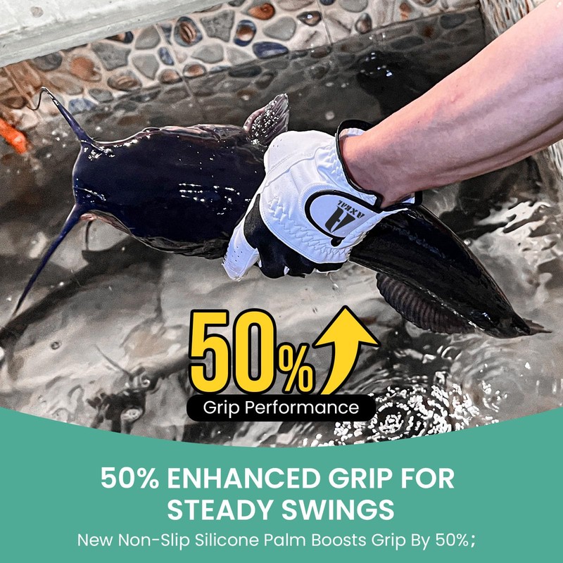 AXKAL Golf Gloves Men Extra Grip Anti Slip 2 Pack/ 1 Pair, Left Right Hand Golf Gloves All-Weather Breathable with Durability Material Sizes S M ML L XL (S, Left)