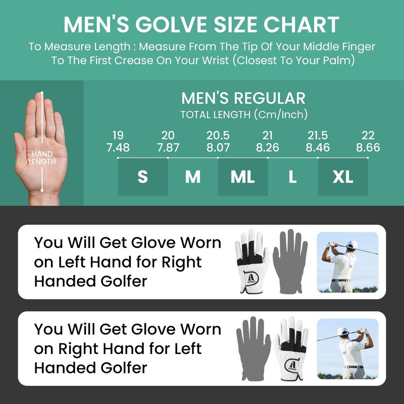 AXKAL Golfhandschuhe für Herren, extra Grip, rutschfest, 2 Stück/1 Paar, Golfhandschuhe für Links- und Rechtshänder, Allwetter-atmungsaktiv, mit strapazierfähigem Material, Größen S, M, ML, L, XL (ML