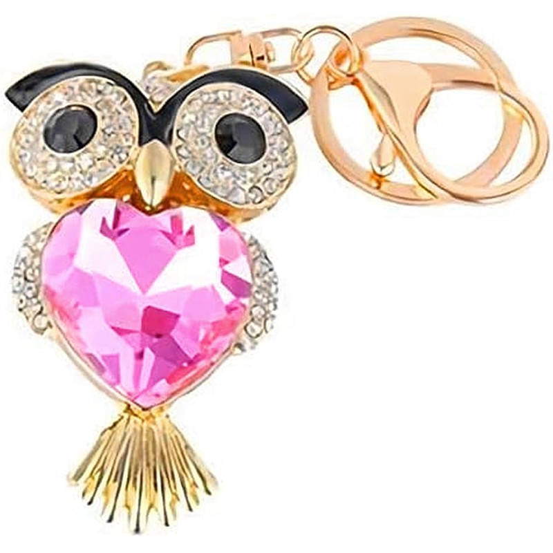Axmerdal Fashion Lovely Lucky Owl Keychain Rhinestone Crystal Pendent Handbag Purse Key Ring Charm for Girl Women(Pink)