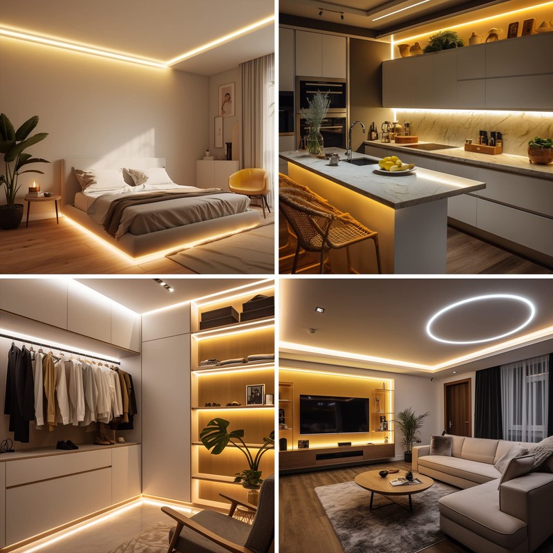 - Versatile and easy to install: COB LED strip can be cut to size and easy to install. Thanks to the powerful 3M adhesive, it can be used in various decorative lighting scenes such as kitchen, cabinet, bedroom and stairs.