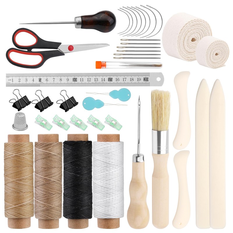 • Book Binding Kit for Beginners: This bookbinding kit is flexible and practical, suitable for beginners. It comes with waxed thread for bookbinding, hand sewing needle for sewing, curved needles for edge stitching, an awl for punching, and clips for fixing