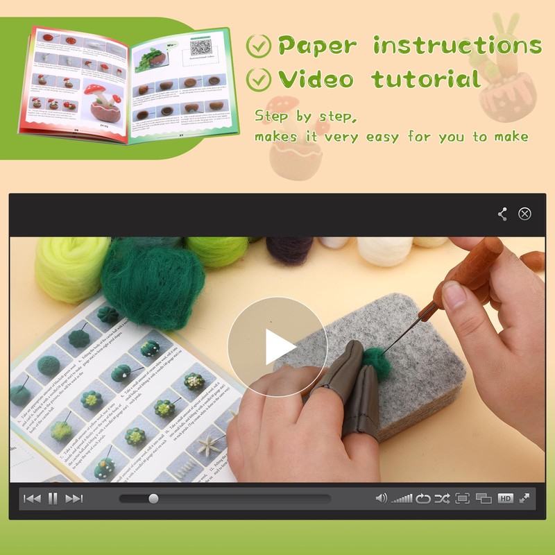 - Detailed Instructions: The needle felting tools kit provides detailed instructions and videos for beginners or experienced people to learn. There are separate pictures and text introductions as well as video tutorials for each image of succulent, you can start with confidence.