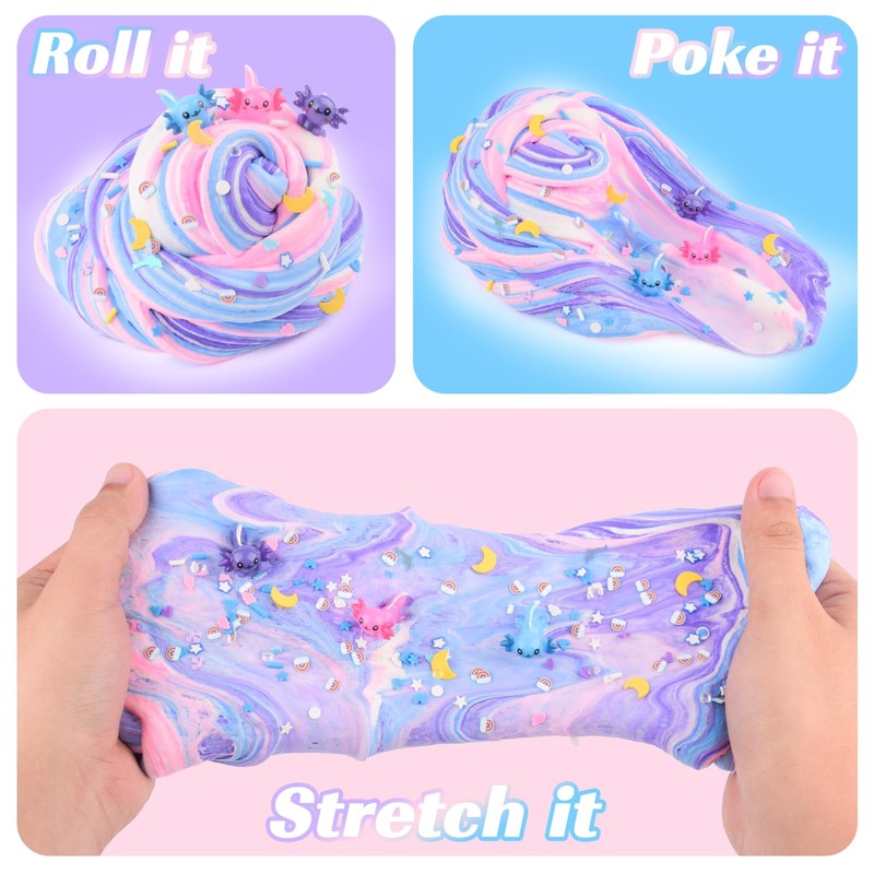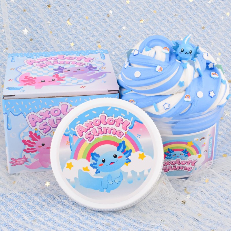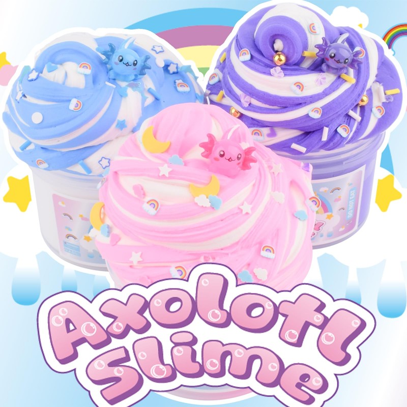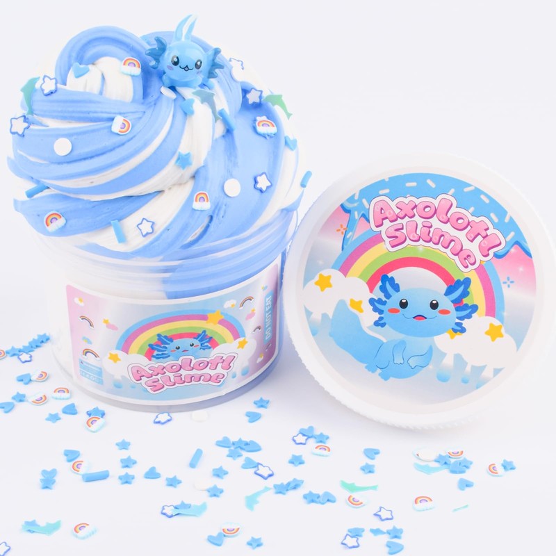 - DIY KIDS SLIME: Blue axolotl slime charm and rainbow slices, and you can freely combine your exclusive colors and textures! Cultivate children's hands-on ability and creative imagination to make unique and personalized slime! Hours of creative play, a slime lover's favourite