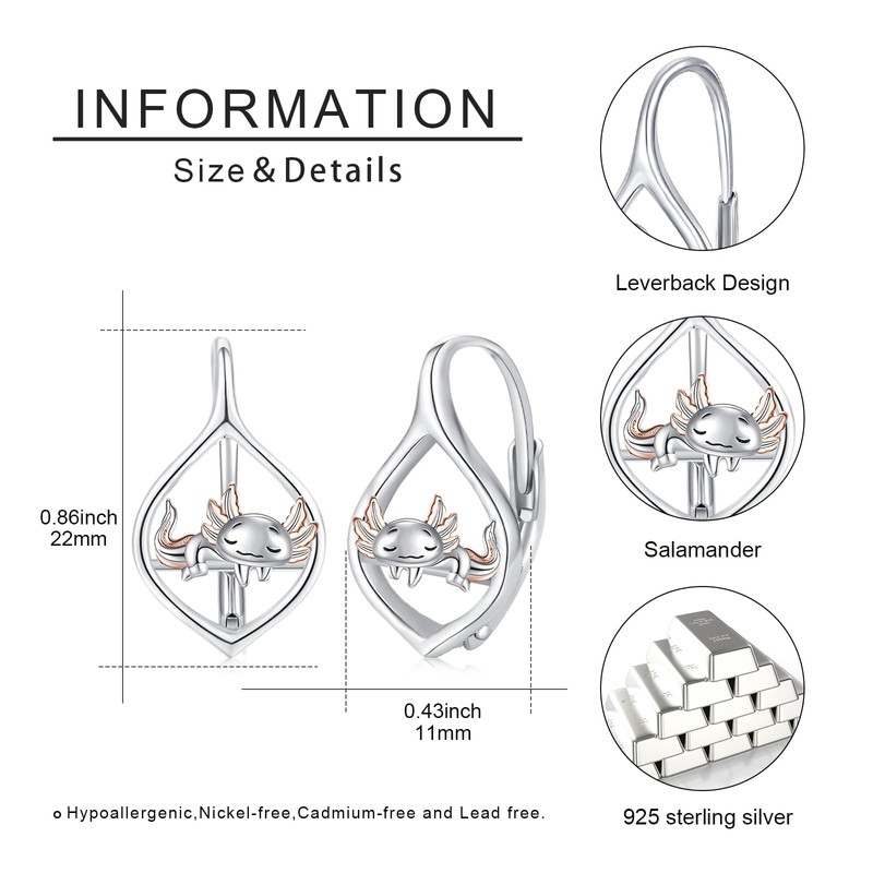 Axolotl Earrings for Women 925 Sterling Silver Axolotl Lever Earrings Jewellery Gifts Hypoallergenic Axolotl Earrings Gift, Sterling Silver