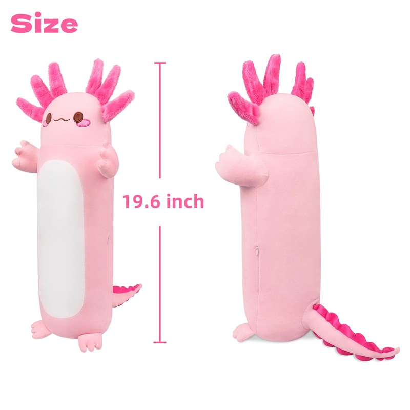 Axolotl Plush Pillow Cute Plush Animal Toy Long Plush Axolotl Hugging Pillow Fluffy Toys, Chubby Axolotl Cushion Pillow Stuffed Animal Soft Toys for Boys Girls, Christmas Birthday(19.6 inch, Pink)