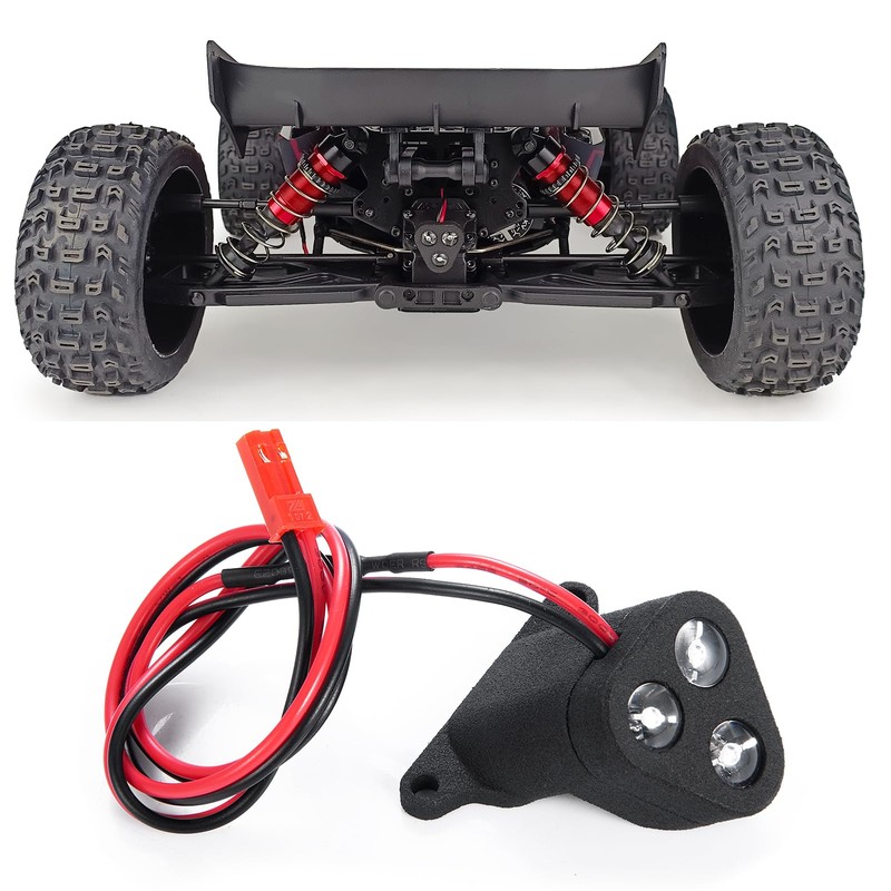 White front lights and red tail lights mimic the real car lighting and enhance both aesthetics and functionality during day or night runs.